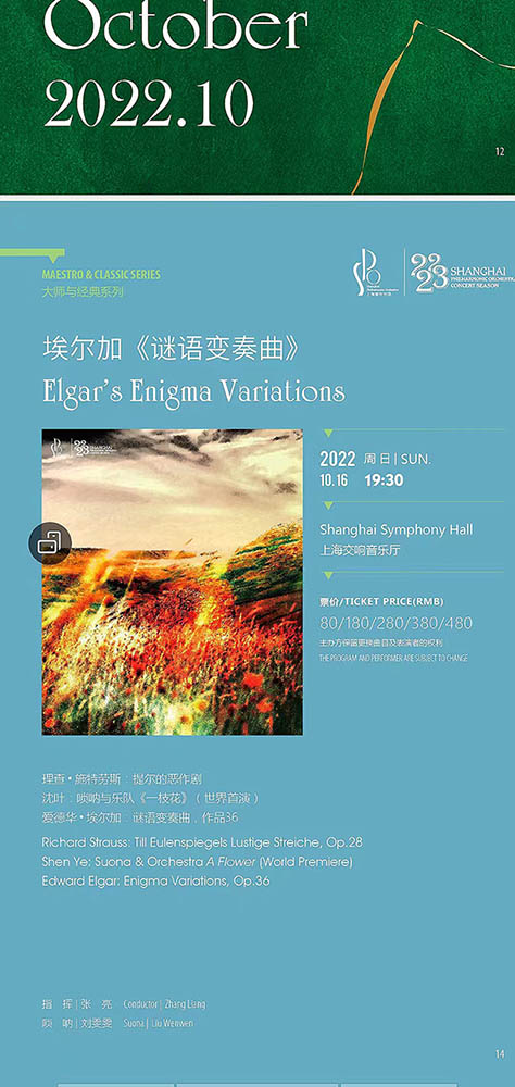 2022年10月16日周日,上海交响音乐厅; Sunday, 16 October 2022, Shanghai Symphony Hall, Shanghai.